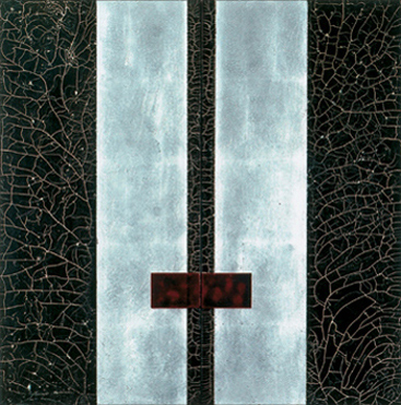 Holz, Blattaluminium, Sand, Reißlack, Farbe, Lack