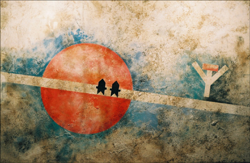 In der Installation sind die oben aufgeführten Bezugspunkte vorhanden, doch ihrem gewohnten Kontext entrissen und in einen neuen Zusammenhang gestellt.